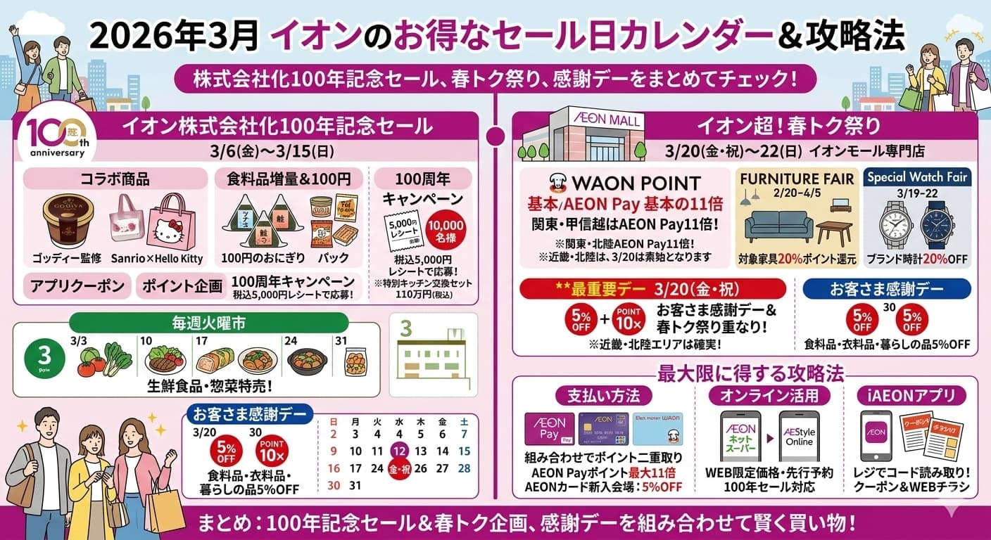 まとめ|2026年3月のイオンは100年記念セールと春トク企画が狙い目